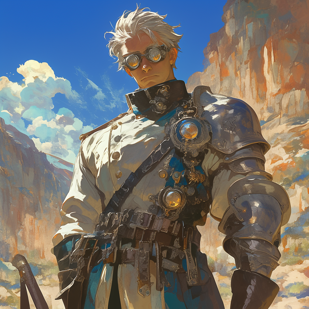 Eldrin Drosk was born in the industrial city of Bricksunder, the son of Anya and Wilheim Drosk. From birth he carried a rare celestial lineage known as the Dawnmarked, a heritage that revealed itself through his faintly glowing golden eyes. In a world where unusual powers often draw fear or suspicion, his father created specialised goggles to conceal the glow, allowing Eldrin to move through society without drawing dangerous attention.